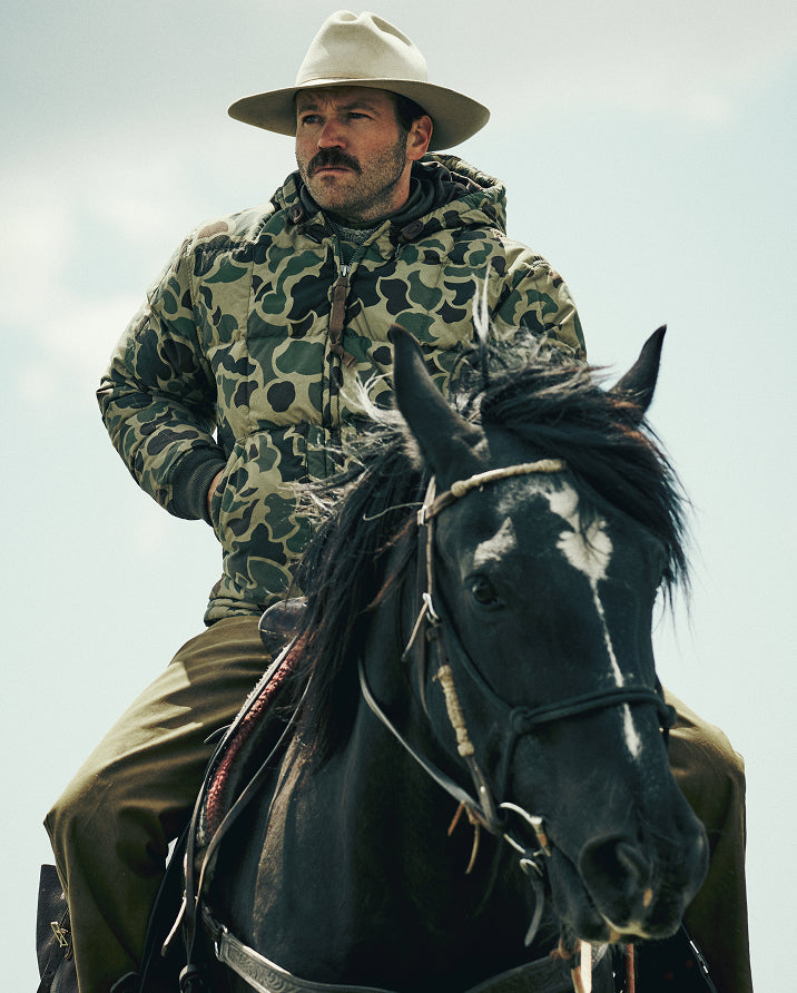 Filson insulated jackets use several different insulations. All-natural goose down is one of our favorites due to its extremely high warmth-to-weight ratio. In weather where the insulation may get wet, PrimaLoft® makes a great alternative to down. This synthetic fill was developed for the U.S. military as an alternative that could mimic down’s lightweight compressibility yet continue to perform when wet. For jackets with thicker, heavier shell fabrics that don’t benefit from the lightweight compressibility of down and PrimaLoft, unbranded polyester insulations can offer comparable warmth at lower cost.